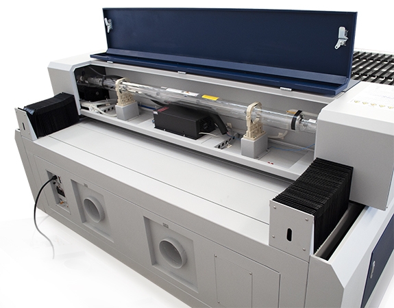 Máquina de corte e gravação a laser CO2 de grande porte, ideal para quem busca um equipamento ágil e preciso. Com ela é possível cortar e gravar MDF, amadeirados, acrílicos, plásticos, couros, tecidos, papeis entre outros. É possível também gravar em cuias, vidros, cristais, pedras, mármores e granitos e com o uso de aditivo gravar em alumínio, aço carbono e aço inox.